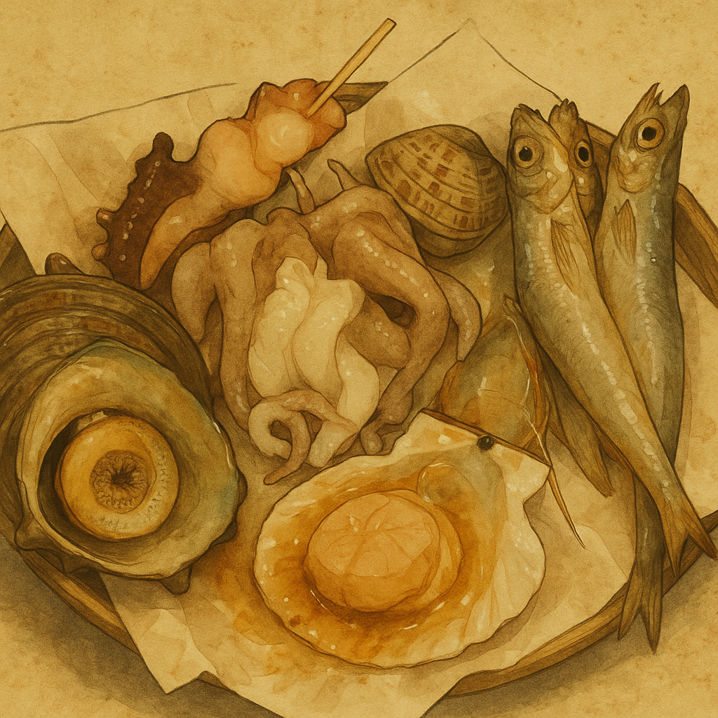 人気の「浜焼き盛り合わせ」は、旬の貝や海鮮をそのまま焼いて香ばしく仕上げる名物メニュー。